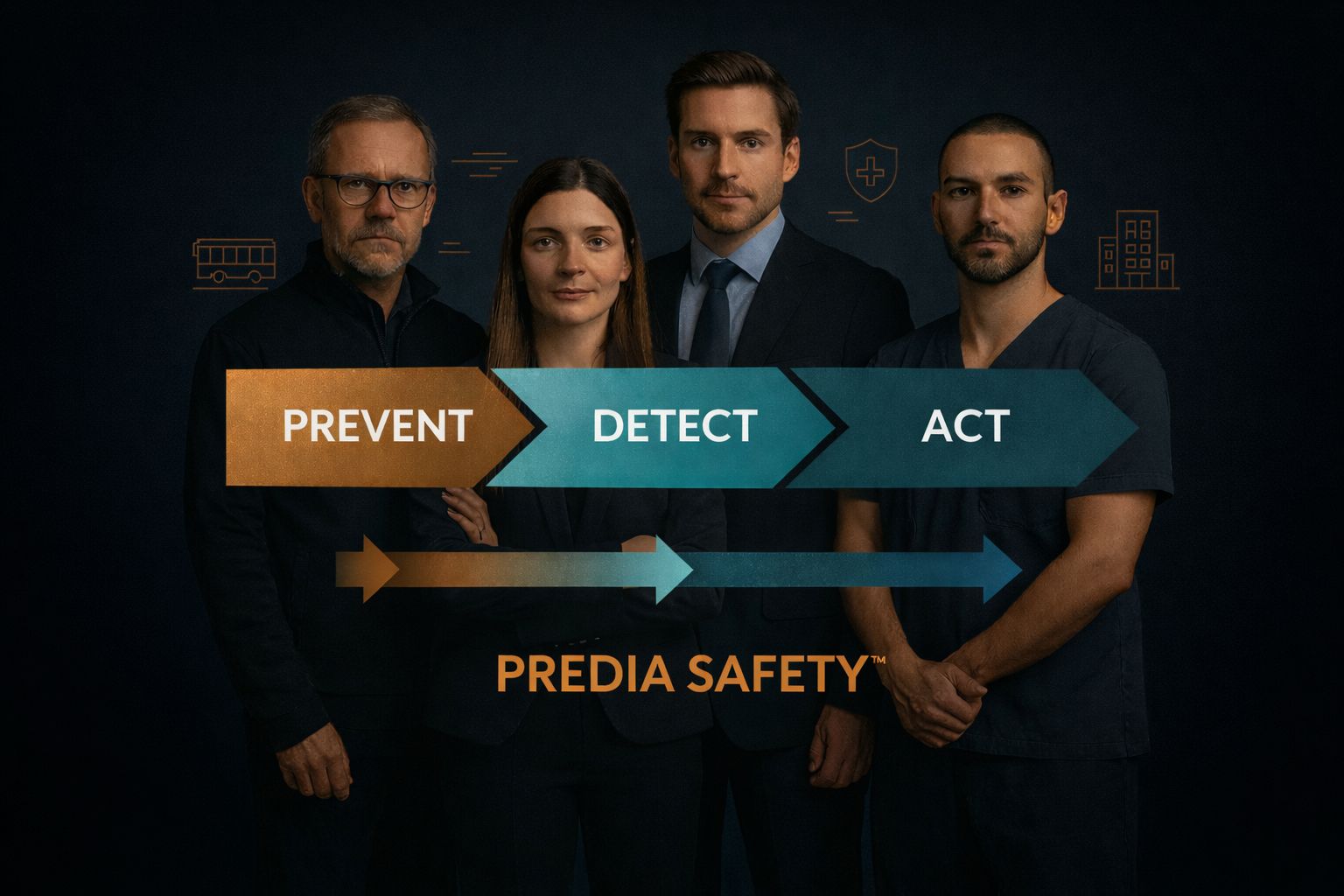 Predia Safety on käytännönläheinen malli, joka auttaa työpaikkoja ennakoimaan uhkia, havaitsemaan riskit ajoissa ja toimimaan turvallisesti myös paineen alla. Tavoitteena on vähentää väkivallan, uhkien ja häiriöiden riskiä – ja vahvistaa työyhteisön varmuutta, rauhallisuutta ja toimintakykyä arjessa.